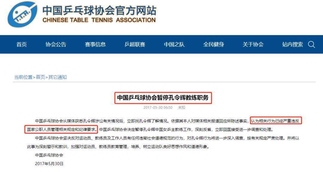 中国乒协反应特别快,马上就发了公告,认定这行为严重违反了纪律。